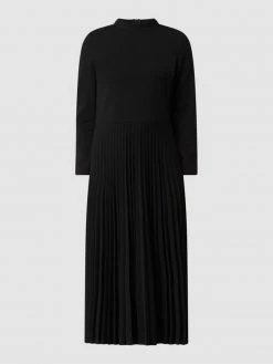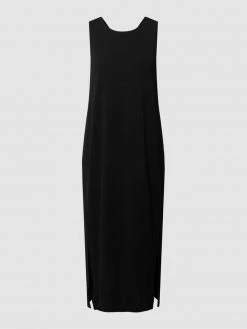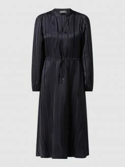 Das Midikleid von Jake*s Collection ist aus einem Baumwoll-Leinen-Viskose-Mix gefertigt und tailliert geschnitten. Es kommt im ärmellosen Design mit Blusenkragen, Taillengürtel sowie kurzer, verdeckter Knopfleiste.