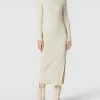 Das Brautkleid von LUXUAR FASHION ist aus einem strapazierfähigen Material gefertigt und körpernah geschnitten. Es zeigt sich mit Spaghettiträgern und Raffungen.