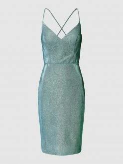 Das Brautkleid von LUXUAR FASHION ist aus einem strapazierfähigen Material gefertigt und körpernah geschnitten. Es zeigt sich mit Spaghettiträgern und Raffungen.