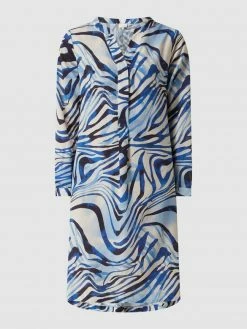 Das Kleid von MANGO ist aus einer Viskosemischung gefertigt. Es zeigt sich in taillierter Passform mit Stehkragen und 3/4-Arm.
