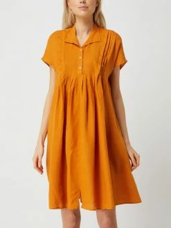 Das Kleid von Tonno & Panna ist aus reinem Leinen gefertigt und ausgestellt geschnitten. Es kommt mit Umlegekragen, angeschnittenen Ärmeln und Biesen.