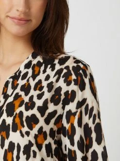 Das Kleid von Tonno & Panna ist aus reiner Viskose gefertigt und ausgestellt geschnitten. Es zeigt sich mit Animal-Print, Tunikakragen und Raffungen.